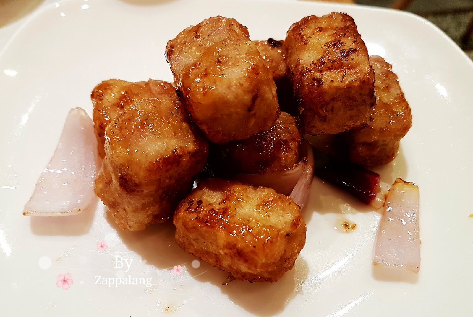 这碟炒芋头居然只有区区的8小块,真的很贵,我本抱着期望不大的心不过放入口中真的有惊喜,芋头的外头炸得金黄酥脆,里头可是绵密粉嫩,看到洋葱和辣椒干,我还以为是类似宫保般的咸辣味,没想到那咸中还带点甜,味道意外地协调,我顿时对接下来主菜的期待变高了!