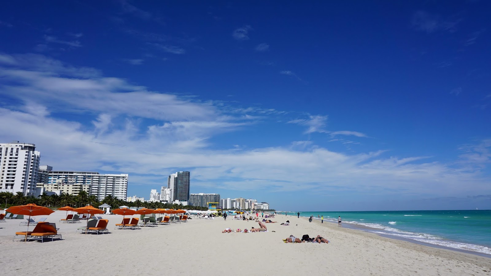 迈阿密众多海滩当中,South Beach 南海滩最为有名气,简称SoBe。这里环境很好,阳光充足。此外,到访此地度假的俊男美女数不胜数,要养眼来这里最好不过了。 在南海滩时不时看见小型飞机在空中飞行,后方拉着广告布条。这样的营销广告,我还是头一次看见。 南海滩可以看见各种颜色的安全救生屋是迈阿密海滩的特色。救生员在救生屋里监管海滩四周围的情况。由于我们站在救生屋前面拍照,屡次被救生员要求离开救生屋前面的范围,我们才意识到我们阻碍他人工作。我们唯有走到安全屋后方取景去。 South Beach 蔚蓝色的海水,细软的沙滩,随便拍都随便美。虽然阳光普照,却挎着冰冷的大风,所以我们谁都不愿意下水甚至光着脚丫。我们只要入景不要入水呢,大伙儿一起放慢脚步在沙滩上漫步。 由于隔天大家都得返回工作岗位,预算在晚间十二点必需抵达Florida。我们打包了 Cuban Food在车上享用,作为当天的晚餐然后才开车离开迈阿密。