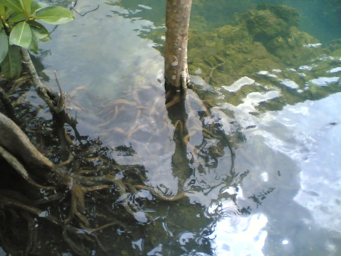 在午餐之前, 導游帶我們到那所謂的 “Crystal River”. 哼! 想到就一把火… 河水那有他說的那麼清澈呀?! 河的另一端都已經被污染了! 一大片的油漬漂浮在水上! 又黑有髒… 看到都不想下水了, 更不用說要游泳. 難怪導游都叫我們不用走到前面去. 最氣人的是儘然還要付 THB50 的入門費! 非常的不值得~! 後悔極了!  但根據一位團友說當她在四五年前來的時候是不用入門費的, 而且河水真的是清澈見底!