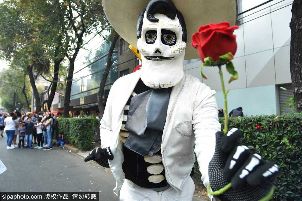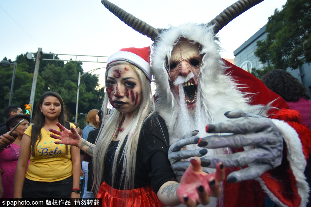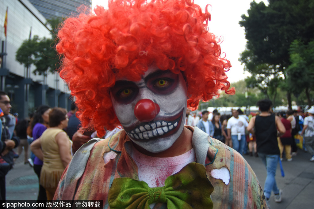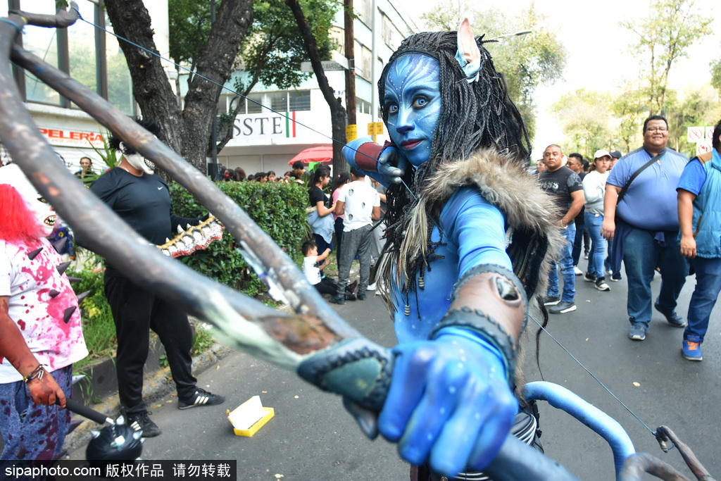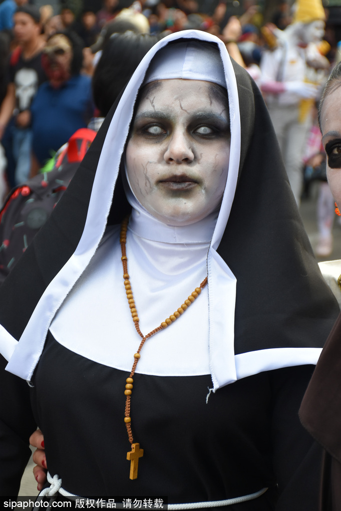当地时间2018年11月13日讯,墨西哥,在11月11日,墨西哥城举行了第20届一年一度的“僵尸大游行”,人们装扮成怪物的样子走上街头,吓坏了从革命纪念碑到墨西哥城左卡罗的路人们。