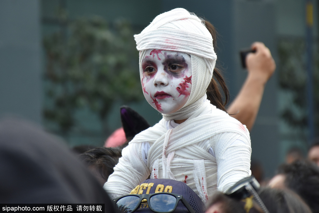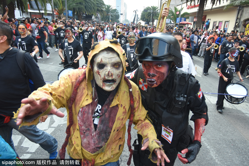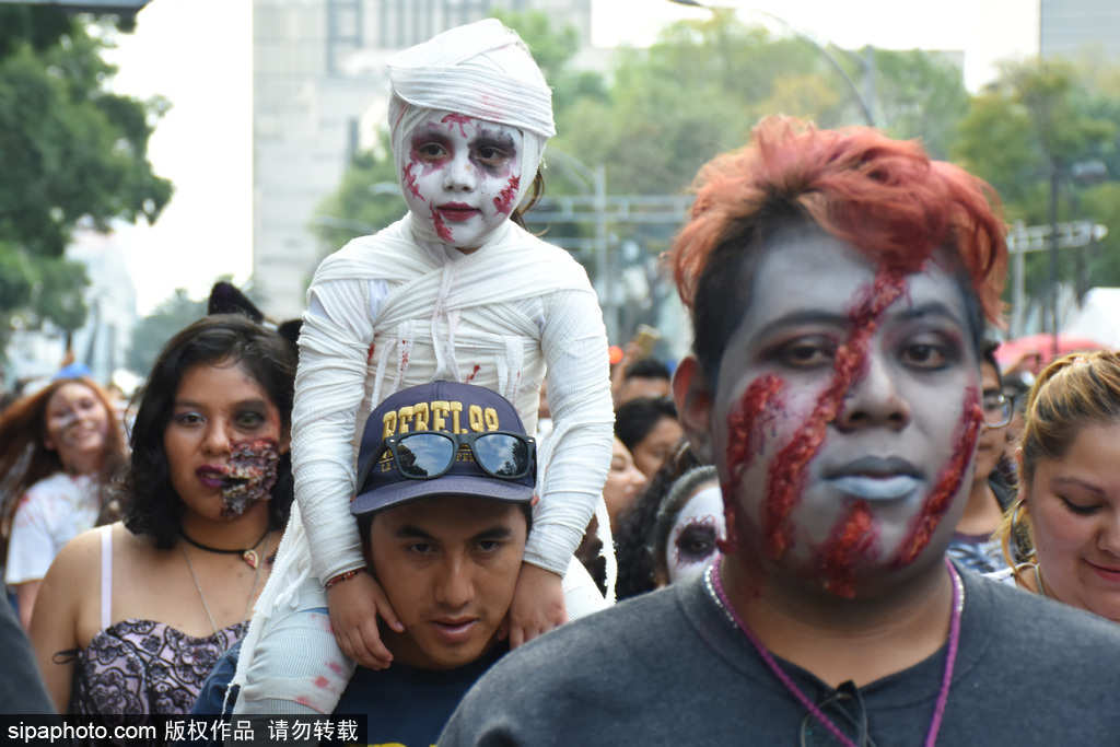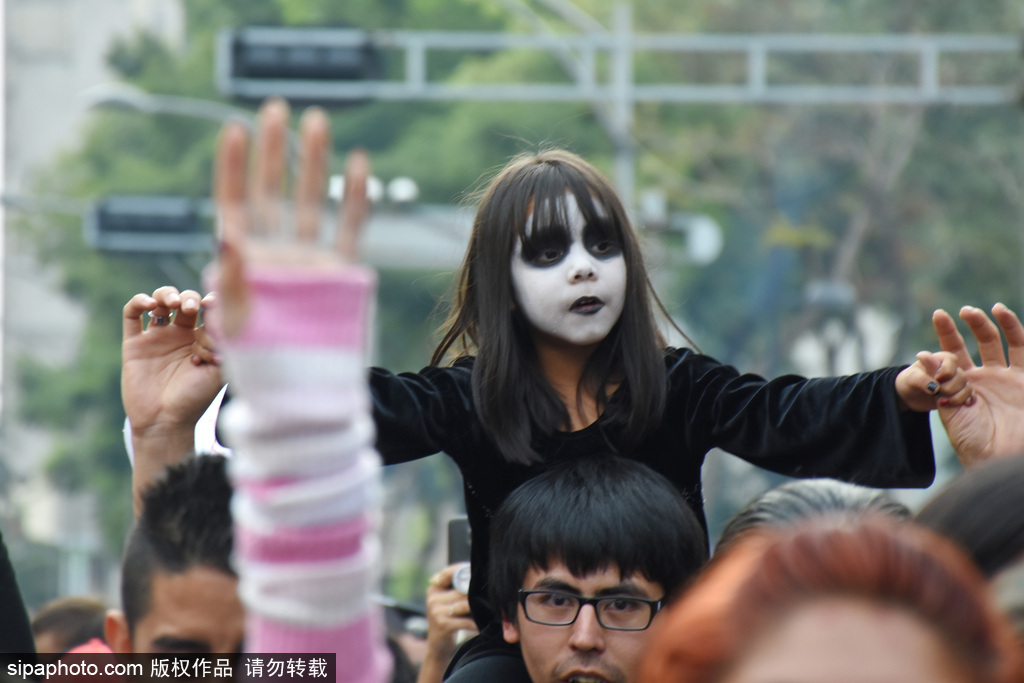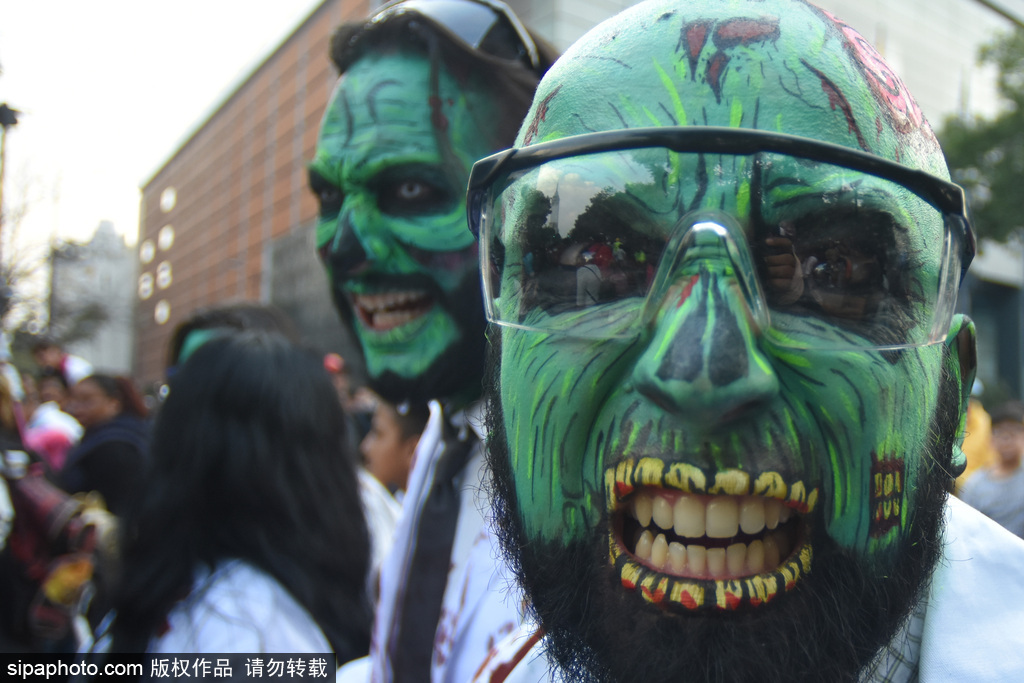 墨西哥城举行“僵尸大游行” 恐怖狰狞行尸吓坏路人