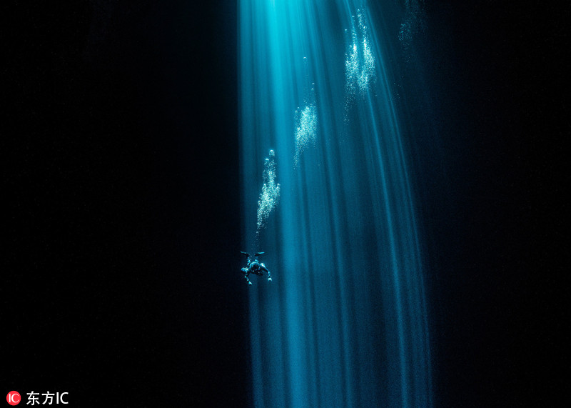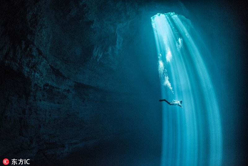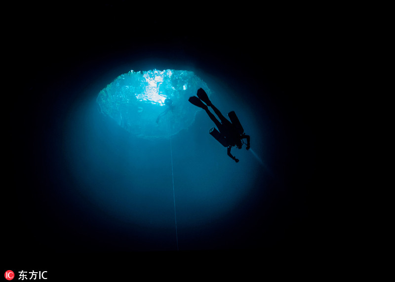 探秘世界最大水下洞穴 蓝光倾泻如“冥界”通道(视频)