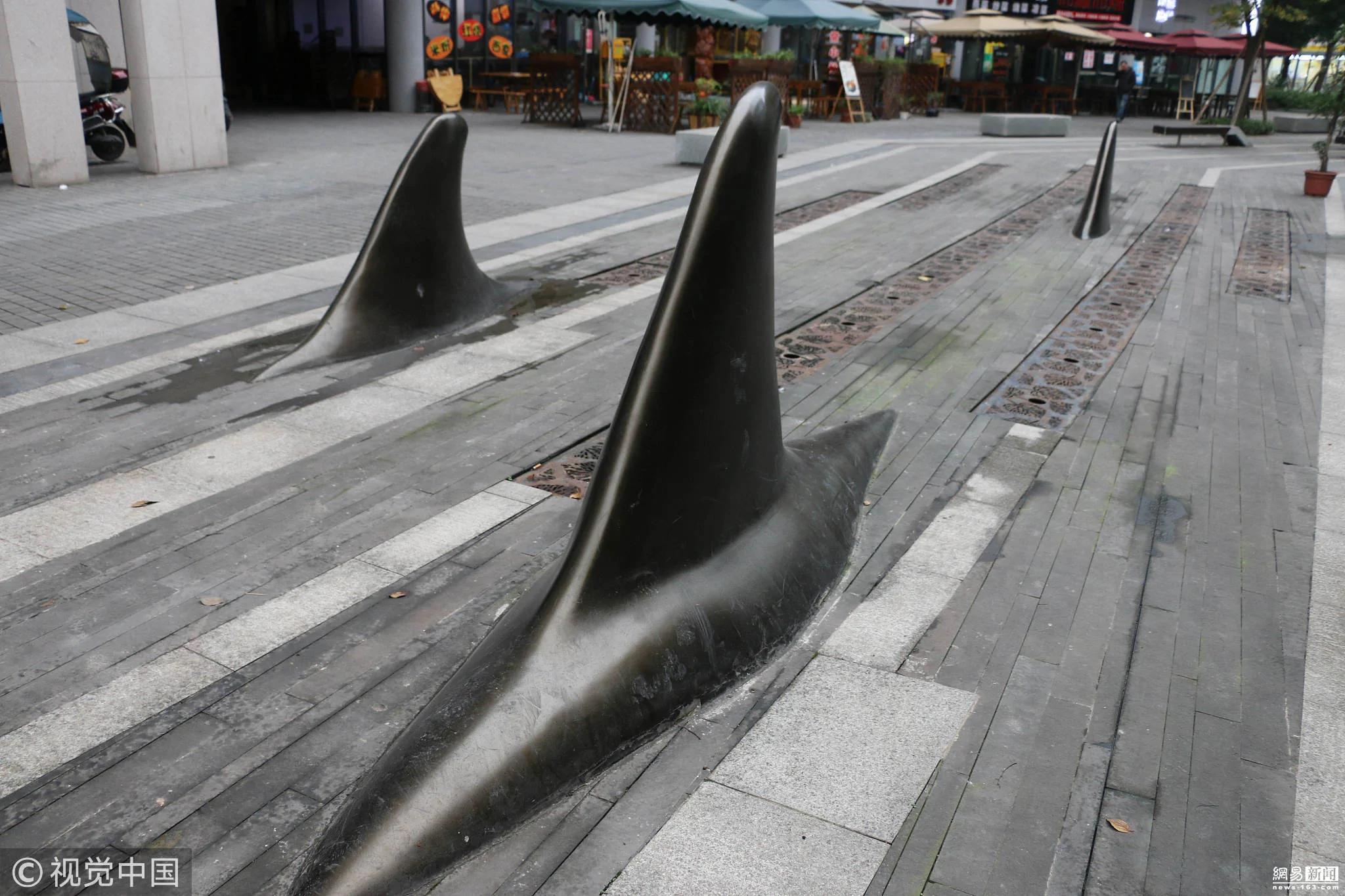 2018年11月20日,重庆一园区内马路中间突出一排“鲨鱼鳍”,司机路人都被“吓懵”了。突出的鲨鱼鳍将两侧的车行道分开,原来,这是为了进一步保证车流的有序进出和行人过街安全,同时也为了防止乱停车占用人行道,设置了这种异形“隔离桩”。 对于这种设计,不少市民觉得比较精巧的,远远地望去,就好像在海面上露出鱼鳍的一群鲨鱼,不仅可以防止被车辆占道,而且还有点装饰的效果。 也有市民认为这样的设计虽然可以阻止司机把车停在这里,但是对于行人也是有一定的危险性的,特别是在晚上,行人在人行道上散步的时候,视线不太好可能会在鱼鳍上磕到碰到,会对行人造成一定的伤害。 突出的鲨鱼鳍将两侧的车行道分开,原来,这是为了进一步保证车流的有序进出和行人过街安全,同时也为了防止乱停车占用人行道,设置了这种异形“隔离桩”。