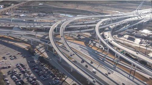 世界上十大最拥堵的高架桥之一的美国德克萨斯州“DALLAS MixMaster”部分(图片来源:youtube视频截图)
