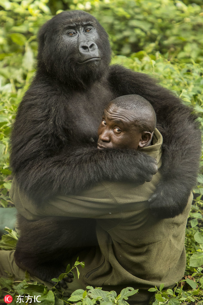 刚果维龙加国家公园,这群大猩猩实在是太喜欢它们的饲养员Andre Bauma了,你瞧它们一个个腻在Andre身边,求抱抱要背背就像是粘人的小屁孩,有个别厚脸皮的家伙不顾自己的体重,爬到Andre的背上撒娇,更有甚者干脆霸道总裁上身,直接把Andre揽进了自己怀里。摄影师James Gifford用镜头记录下了这暖心的一幕。