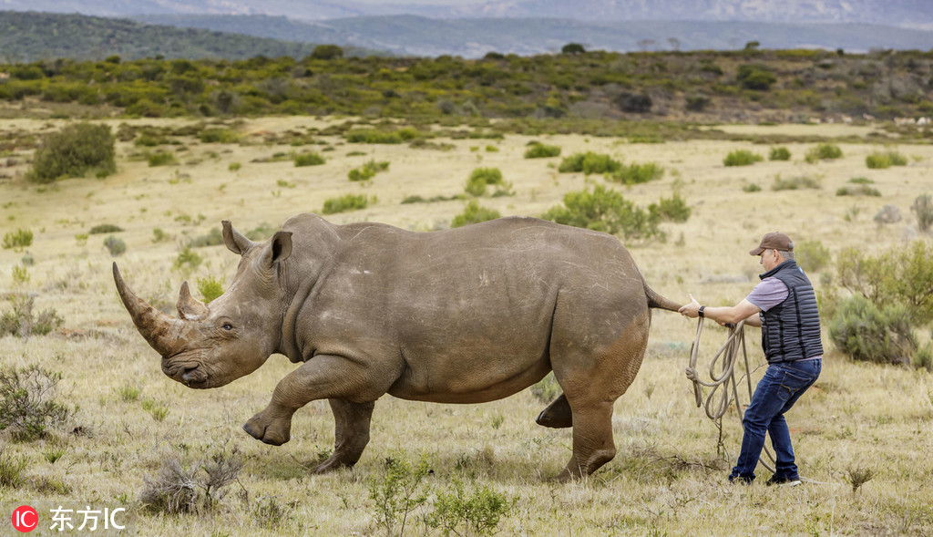 南非东开普省,这组照片显示一群环保主义者救治一头受伤犀牛的全过程。保护组织团队先是用直升机追踪到了这头犀牛,犀牛拒绝接受救治与保护组织人员上演追逐游戏,随后兽医用麻醉针将其麻醉制服,并为其包扎了伤口。他们还在这头受伤犀牛的牛角处安置了一个微型芯片以方便对其进行后续追踪。摄影师Rainer Schimpf拍下了这些画面。
