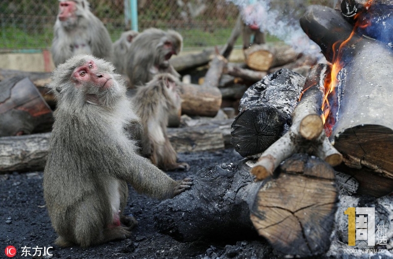 当地时间2018年12月19日,日本爱知县犬山市,日本猿猴中心内的猴子们围在篝火旁取暖。