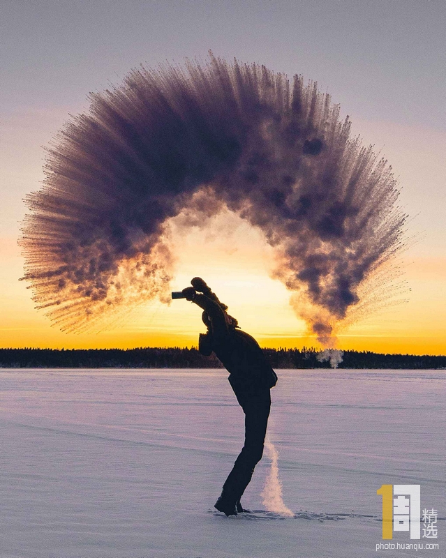 2018年12月20日报道,芬兰库萨莫,31岁的Steffen Fossbakk来自挪威塞尼亚岛,Steffen为朋友23岁的Konsta Punkka在芬兰拍摄了一张奇异的照片。画面中,Konsta将沸水洒向零下34摄氏度的冰天雪地中,霎时,蒸发的水蒸汽遇冷凝华,形成微小的冰晶,并组成一座耀眼的弧形物。