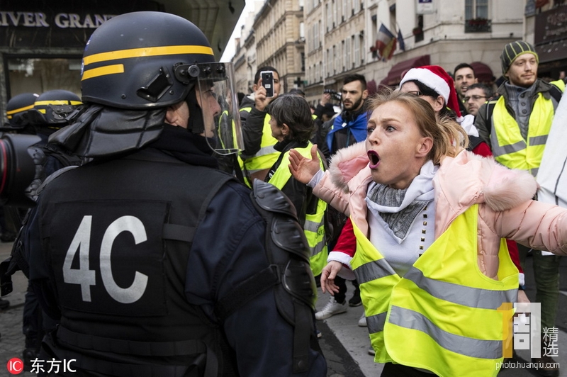 当地时间2018年12月22日,法国巴黎,法国爆发第六轮“黄马甲”抗议活动,抗议者与防暴警察发生激烈冲突。