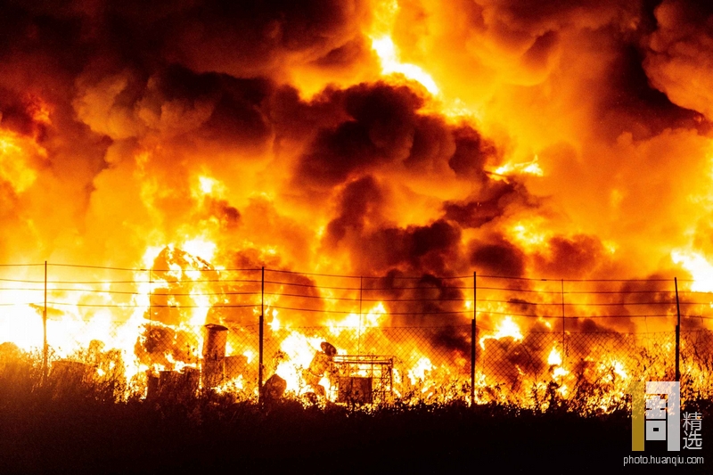 当地时间2018年12月17日,波兰弗罗茨瓦夫,当地一个非法垃圾场起火,现场火光汹涌。