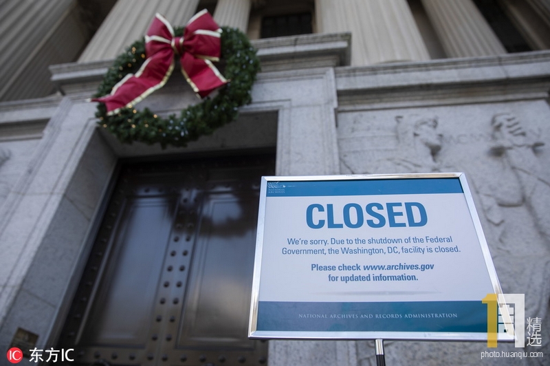 当地时间2018年12月22日,美国华盛顿,美国国家档案馆关门。据报道,因美国国会和白宫围绕特朗普边境墙计划的拨款问题未达成一致,美国政府于当地时间22日凌晨00:01分(北京时间22日13:00)正式部分关门。