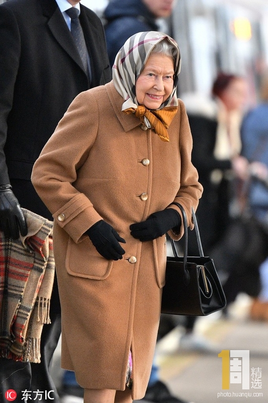 当地时间2018年12月20日,英国诺福克郡,英国女王伊丽莎白二世抵达国王林恩火车站,前往桑德林汉姆庄园过圣诞。女王再现经典“村姑”造型。