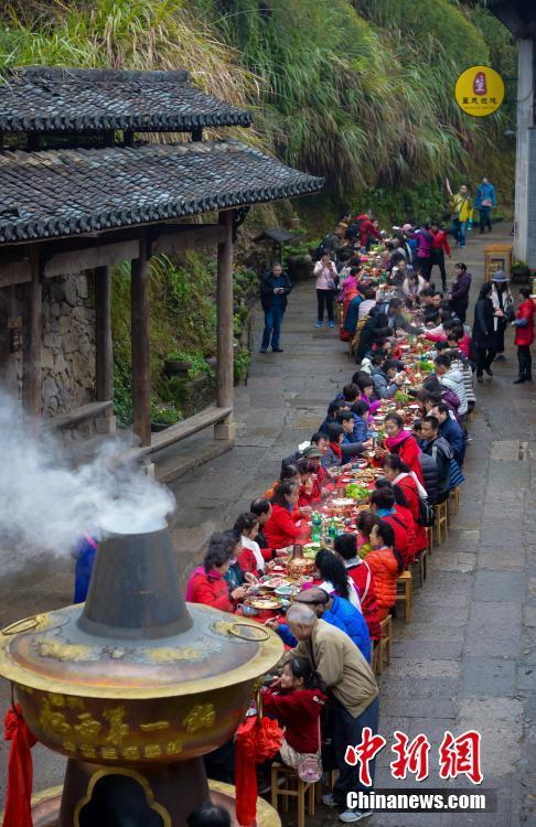 12月22日,农历冬至节气,江西省婺源县篁岭古村举行天街火锅宴庆祝丰收。 方华彬 摄