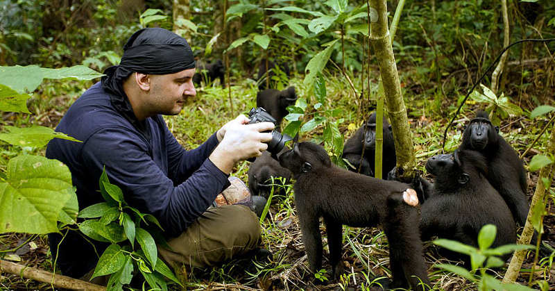 摄影师克里斯托夫•瓦塞林(Christophe Vasselin)想要拍摄猩猩的完美照片时却被它猛推倒退的情景……