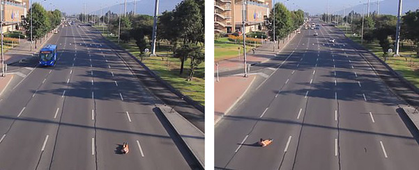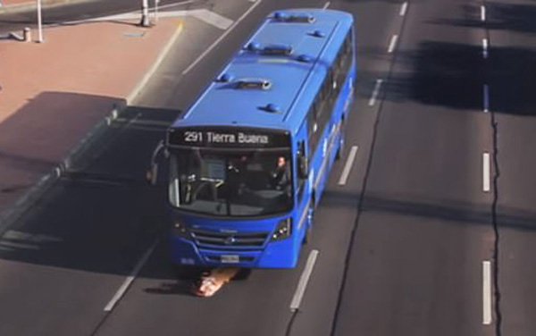 哥伦比亚狂男公路上表演特技“过马路” 竟然毫发无损(视频)