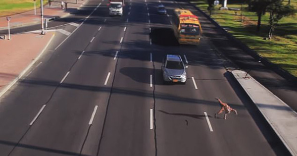 视频中的男子名叫乔治•埃斯特班•皮塔(Jorge Esteban Pitta),他在视频中做出了一系列惊心动魄的举动。一辆黄色公交车高速驶过,皮塔不闪躲而是在右车道上做了一个侧空翻,紧接着他又在旁边的车道上停下,让一辆SUV从身旁飞速驶过,随后皮塔站起来表演了一个侧空翻之后,面朝下,躺在公路上,让公交车从身上开过。