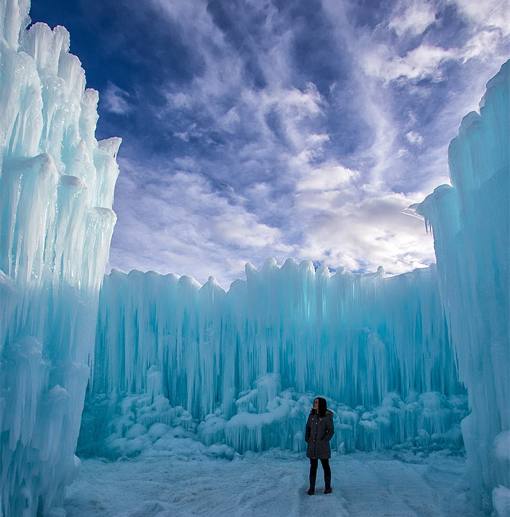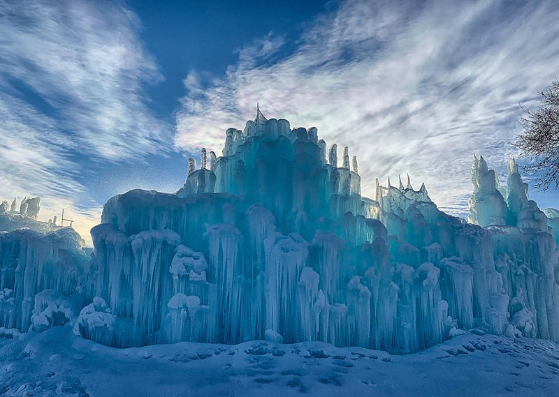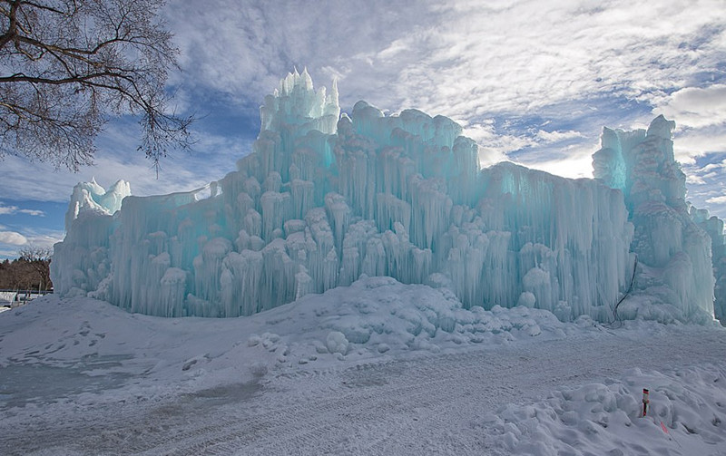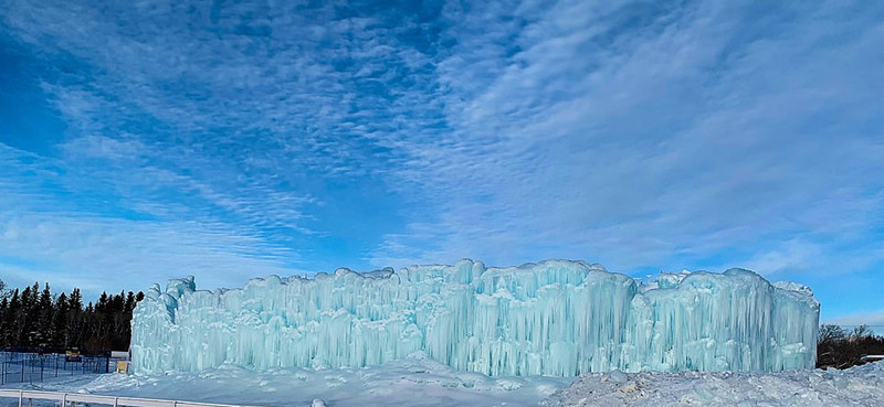 冰雪城堡看似犹如自然之作,实际是由冰匠用上千根冰柱堆砌而成。他们晚上浇筑并使其冰冻,第二日早上便可获得完整冰柱,他们将冰柱堆砌,垒至40英尺(约12米)左右,整个过程贯穿于10月初至11月末。