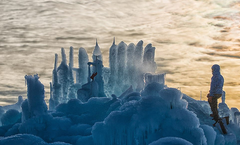 摄影师乔(Joe Chowaniec)拍摄了冰雪城堡的奇景,称当时温度低至零下15摄氏度。