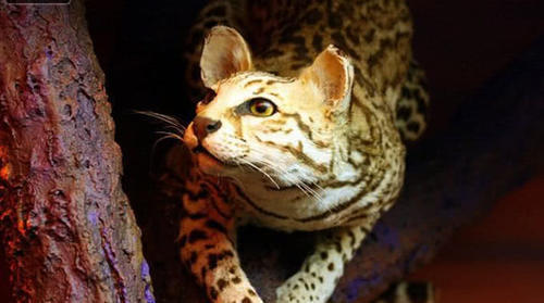 8乔氏猫 乔氏虎猫是孤独隐秘的夜行者,晨昏时分也会出来。是典型的树栖动物,也常在地面寻找食物。独居。它们是顶级掠食者,位于食物链的顶部,主要猎食啮齿目、小鸟及鸟卵、蜥蜴、昆虫,有时吃青蛙及鱼类。是游泳健将,能游过湍急的河流,所以也捕食鱼类。