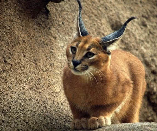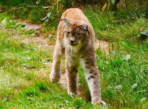 4猞猁 猞猁是一种离群独居、孤身活跃在广阔空间里的野生动物,是无固定窝巢的夜间猎手。白天,它可躺在岩石上晒太阳,或者为了避风雨,静静地躲在大树下。它既可以在数公顷的地域里孤身蛰居几天不动,也可以连续跑出十几千米而不停歇。擅于攀爬及游泳,耐饥性强。可在一处静卧几日,不畏严寒,喜欢捕杀狍子等中大型兽类。晨昏活动频繁,活动范围视食物丰富程度而定,有占区行为和固定的排泄地点两只直立的耳朵的尖端都生长着耸立的长长的深色丛毛,长达4-5厘米,其中还夹杂着几根白毛,很象戏剧中武将头盔上的翎子,为其增添了几分威严的气势。耳壳和笔毛能够随时迎向声源方向运动,有收集音波的作用,如果失去笔毛就会影响它的听力