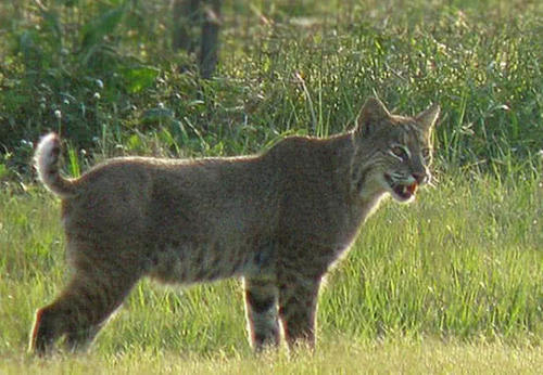 9短尾猫 短尾猫属于杂食动物,以能捕到的任何动物为食,白靴兔是短尾猫的主要猎物。短尾猫可以很长时间不吃食物,但当猎物丰富时会不断的吃。在缺乏食物时,它们会猎食较大的动物,以便供应后来的需要。短尾猫会跟踪及伏击猎物。它们较喜欢猎食重0.7-5.7千克的哺乳动物,而不同地区会捕猎不同的猎物。在美国东部,它们主要猎食林兔属,在北部主要是白靴兔。在美国东部,这两类猎物同时存在,短尾猫会同时猎取这些食物。短尾猫猎食不同大小的动物,并会随之更换捕猎手法。对于小型动物,如啮齿目、松鼠、鸟类、鱼类及昆虫,短尾猫会前往猎物丰富的地方,躺下静待及伏击猎物。对于稍为大的动物,如兔及野兔,它会跟踪猎物,直至猎物在其6-20米的范围内,并开始追捕猎物。短尾猫偶尔亦会猎食较大的动物,如狐、貂、鼬鼠、体型小的狗及家猫,有时也会猎杀家畜及家禽,小绵羊及山羊也会受到其攻击。