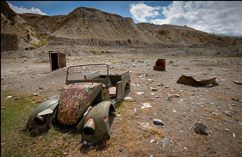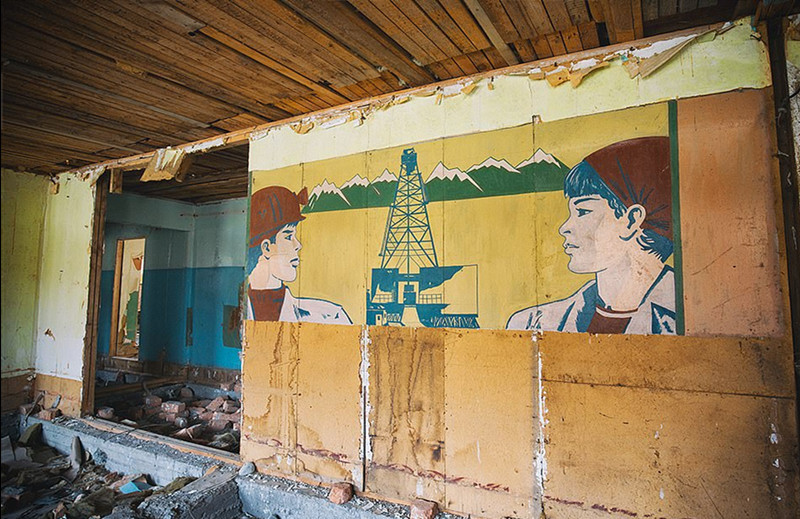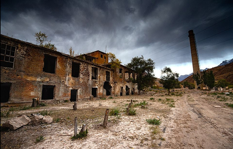 伊尼尔切克位于吉尔吉斯斯坦东部深山中,靠近中国边境。由于该地区钨、锡、钼和其他金属资源丰富,它曾是一个繁荣的矿业城镇。1980年,苏联人开始在伊尼尔切克采矿,吸引了成千上万的年轻人工作。伊斯蒂布补充道:“当你走在这里的时候,你会发现人们好像一听到坍塌的消息就扔下了所有东西离开了,建筑棚里的盘子、刀叉和炊具都还在桌子和橱柜里,好像随时都有人可以进来冲杯咖啡。”
