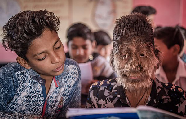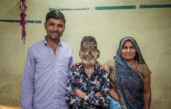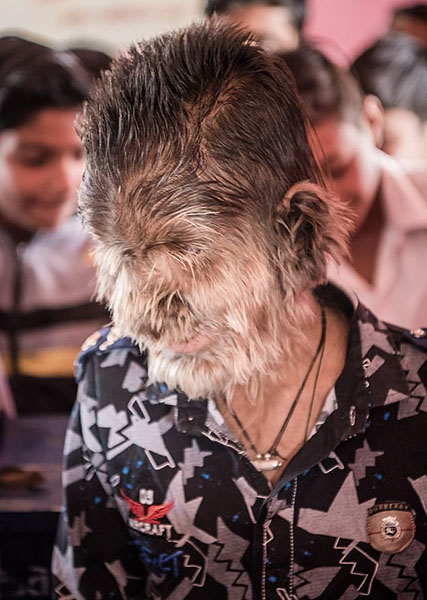 家住印度中央邦拉特拉姆市的13岁男孩拉里特•帕迪达尔(Lalit Patidar)患有一种十分罕见的被称为“狼人综合征”的疾病,这导致他整个面部和其他身体部位长满毛发,宛若“狼人”。