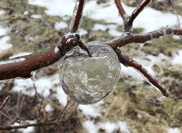 天寒地冻气候 农场惊现“冰晶幽灵苹果”奇观