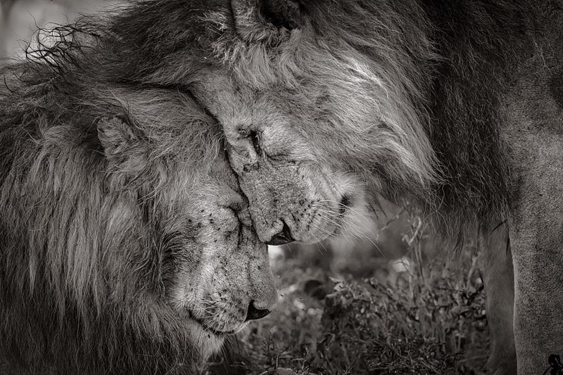 近日,在伦敦自然历史博物馆组织的年度人物选择野生动物照片比赛中,经过16000名自然爱好者的公开投票,新西兰摄影师David Lloyd拍摄的作品《兄弟之邦》拔得头筹。David的作品《兄弟之邦》记录了坦桑尼亚的两头雄狮用鬃毛摩擦对方的温情画面,他说:“这说明了动物之间也有情感,(感情的发生)不仅限于人类。”