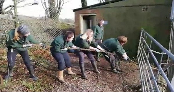 该动物园在脸书网上为这个活动打广告,上传了一段视频,只见四名参与者在围栏外拉着绳子的一端,然后把绳子从围栏下面伸进老虎或狮子的围场,另一端拴着一块肉,目的是引诱老虎或狮子上前咬住绳子的另一端,这样一场人兽拔河赛就开始了。