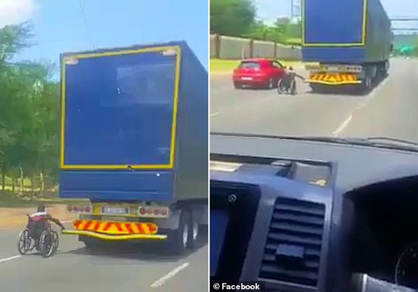 据悉,该视频由另一位在高速路上开车的司机在南非比勒陀利亚附近拍摄,随后发布在社交媒体上。有人称该男子经常利用卡车搭顺风车,还有一位名叫米卡埃尔•克莱顿的网友开玩笑称:“我想我们已经知道他最终怎么在轮椅上玩儿完的了!”
