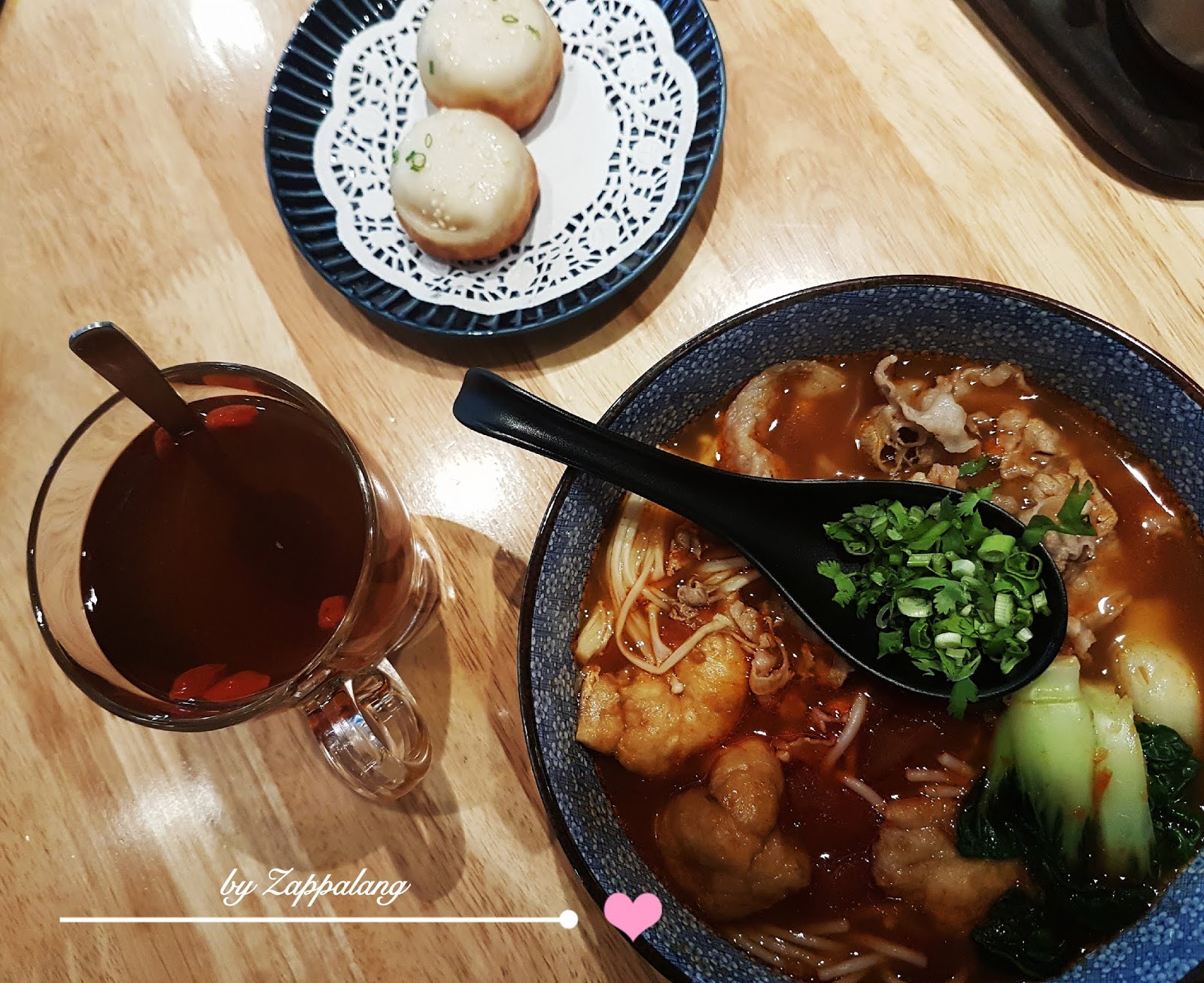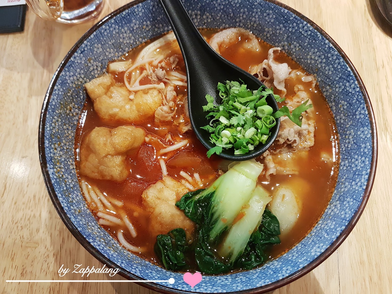 翻开餐牌,第一样看到的就是这里的烧鹅面,哇不过一碗面居然要价RM30多...爱吃可是又不舍得的我决定了先吃下别的,肯定了水准再来决定下次要不要花那么贵的钱来吃一碗面,最后,我选择的是看起来很开胃的澳洲肥牛番茄面!当然还有随餐加点的生煎包。