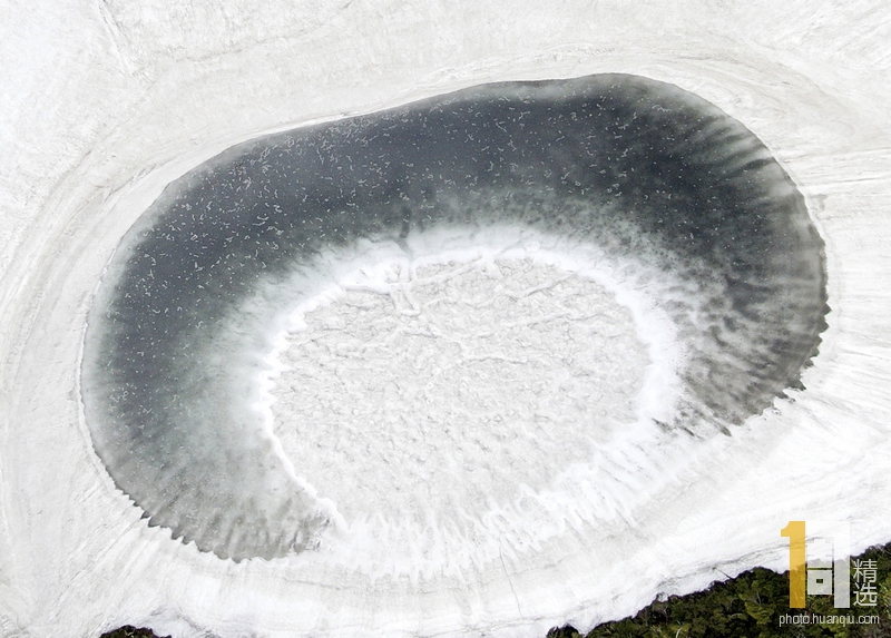 当地时间2019年5月22日,日本,伴随着积雪融化,横跨岩手县与秋田县的八幡平山顶附近的“镜沼”再现奇特的“龙眼”景象。