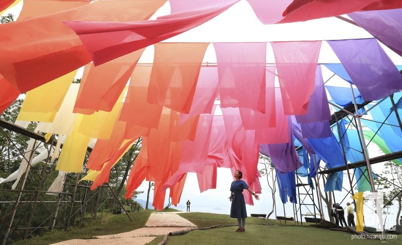 当地时间2019年5月31日,日本志贺县高岛市,太函馆内晾晒着色彩缤纷的高岛特产棉绉。