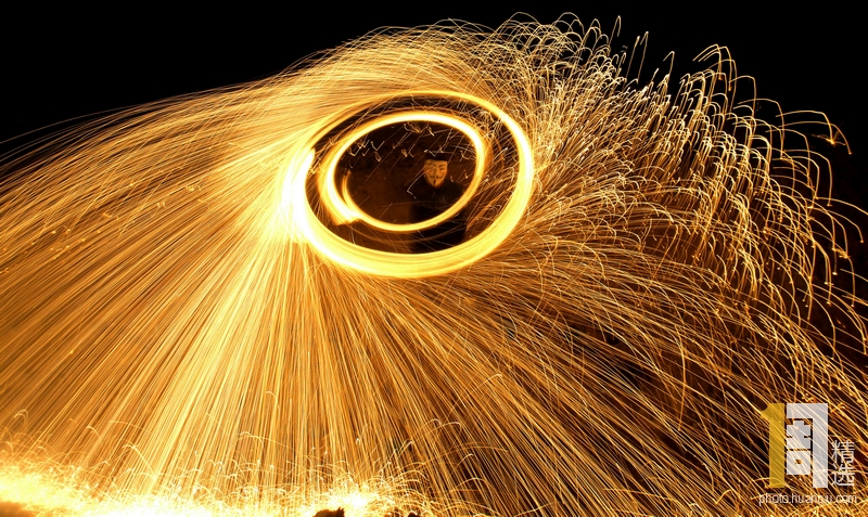 当地时间2019年5月29日,加沙,一名巴勒斯坦人燃放烟火,庆祝穆斯林斋月将结束。