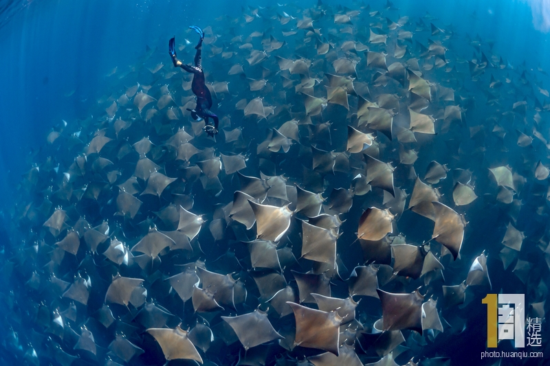 2019年5月31日报道,环保活动家兼潜水教练Jay Clue上个月在墨西哥下加利福尼亚州洛斯卡沃斯附近海岸,幸运地邂逅了一支蝠鲼迁徙大军,数百只蝠鲼浩浩荡荡在海水中行进,画面十分震撼。