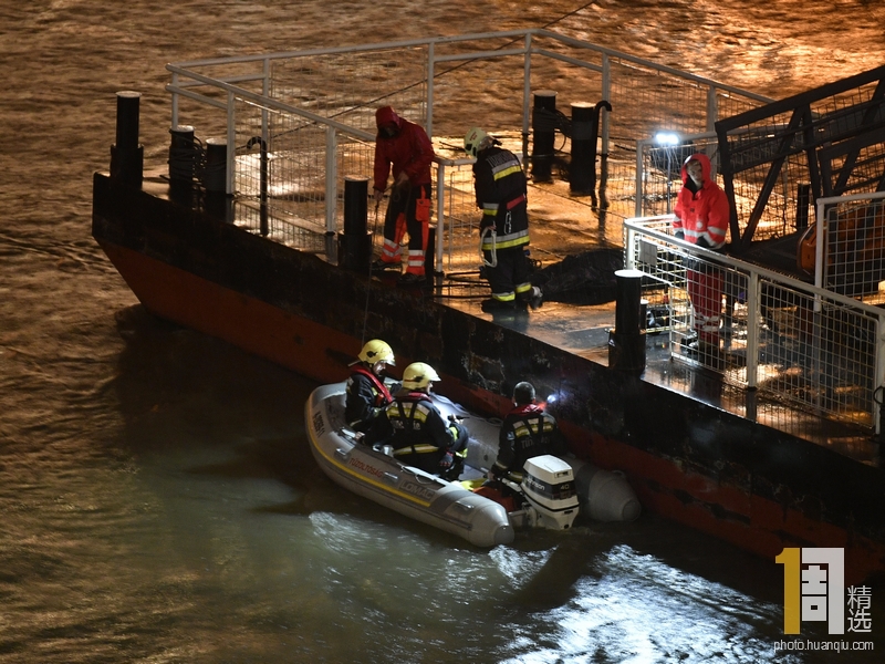 当地时间2019年5月29日,匈牙利布达佩斯市中心多瑙河发生两艘游船相撞事故。图为救援人员和警察在码头。据匈方报道,初步确认34人落水,捞救起18人,其中3人确认死亡,另有16人失踪。
