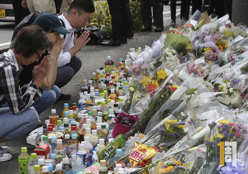 当地时间2019年5月29日,日本神奈川县川崎市,川崎持刀伤人事件发生第二天,民众自发来到案发地一带献花致哀,为遇难者祈福。
