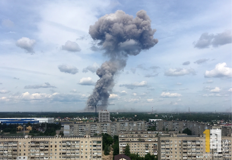 当地时间2019年6月1日,俄罗斯下诺夫哥罗德州捷尔任斯克市,一家工厂发生爆炸,爆炸造成附近居民楼多间住宅的窗户玻璃破损。爆炸已经导致85人受伤,其中包括39名工厂工人和46名当地居民。