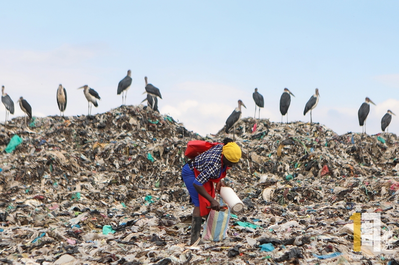 当地时间2019年6月4日,肯尼亚首都内罗比,世界环境日前夕,一名妇女在垃圾场拾荒谋生。