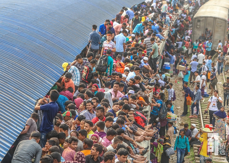 2019年6月6日讯,孟加拉达卡,开斋节在即,为了挤上回家的火车,数千人同挤一趟火车,座位不够车顶凑,车顶不够悬挂位凑,场面壮观。