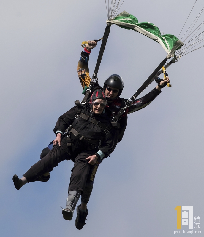 当地时间2019年6月8日,加拿大不列颠哥伦比亚省阿伯茨福德,90岁老人Etta Hellyer体验跳伞。据悉,此次活动是当地一家新开业的老年人看护之家举办的活动,Hellye和95岁老人Henry Martens都在家人的支持下完成了跳伞挑战。