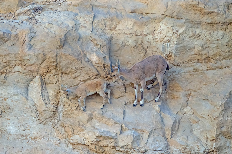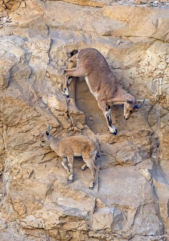 母亲为了孩子的安危,也跟着在陡峭的悬崖上铤而走险。