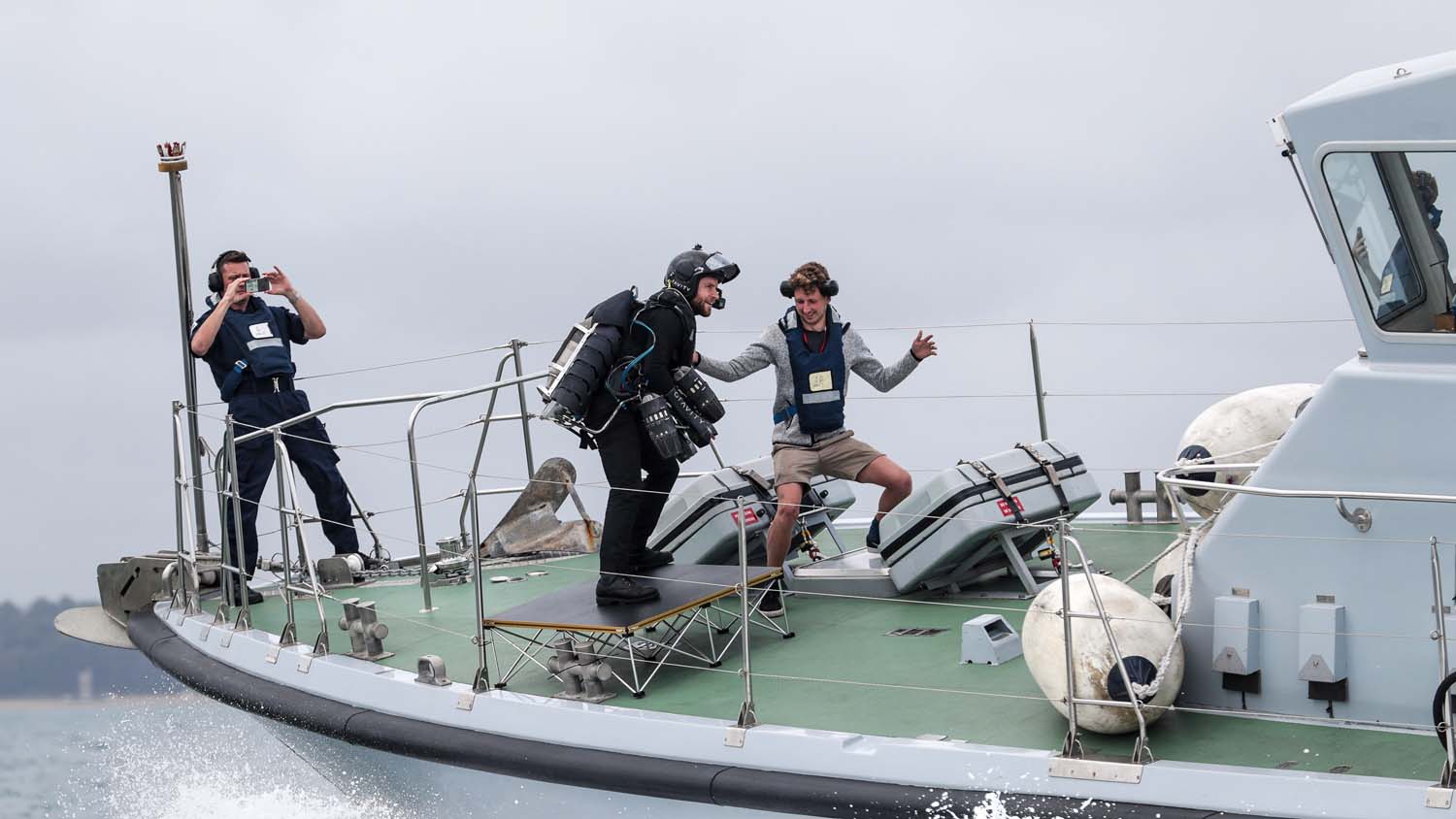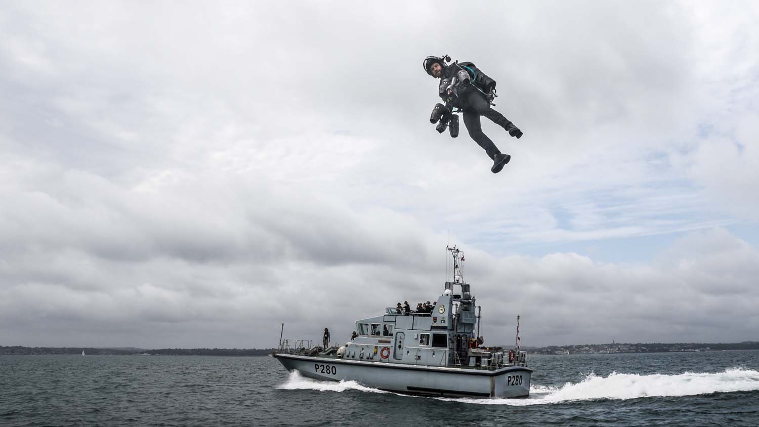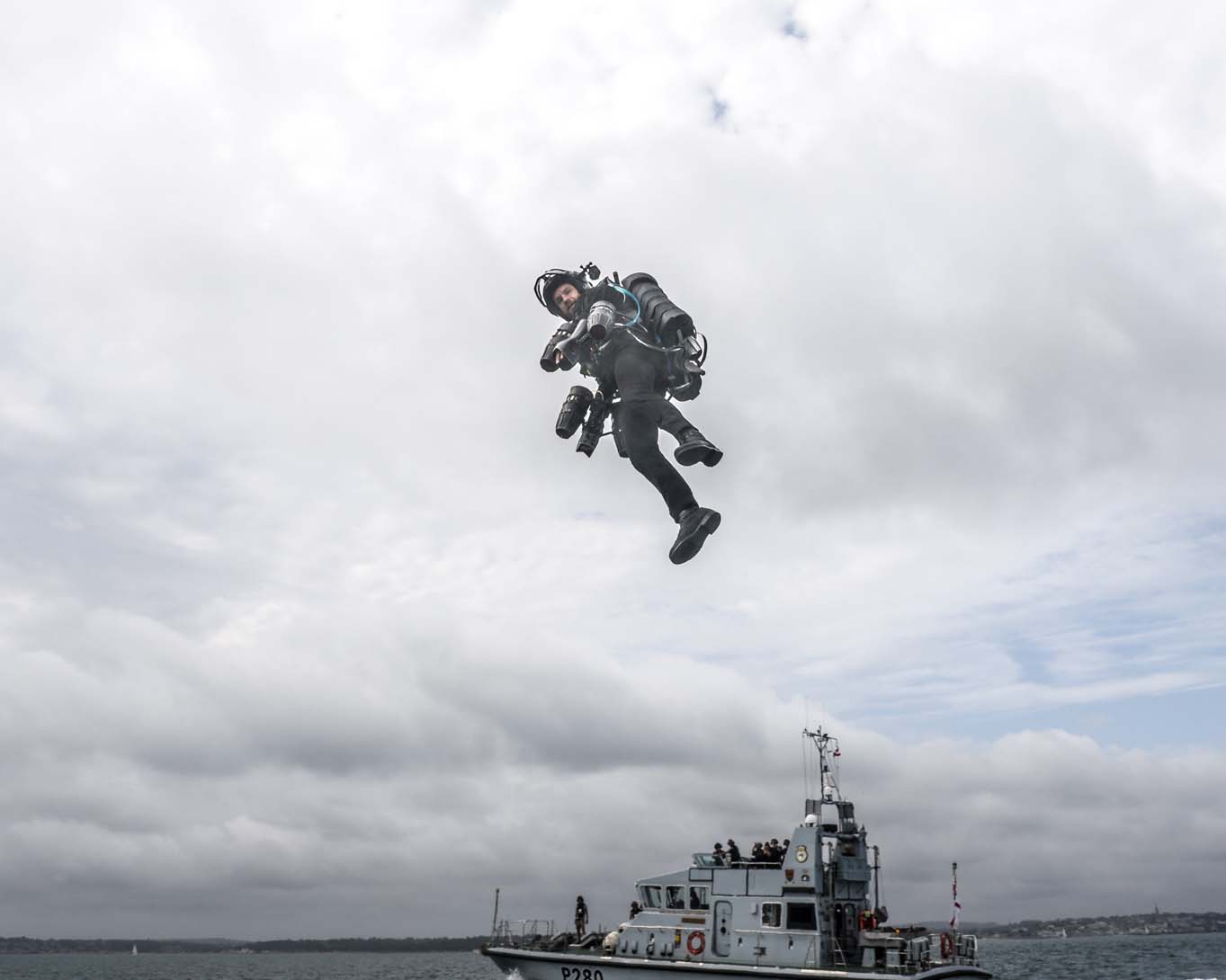 这艘巡逻艇的前桅上设置了一个小型的着陆和发射台,巡逻艇以20节的速度在朴次茅斯港附近航行,理查德·布朗宁身穿喷气动力套装成功进行了飞行测试。