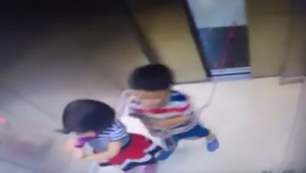 土耳其一小男孩被吊电梯门上 姐姐反应迅速救下弟弟(视频)