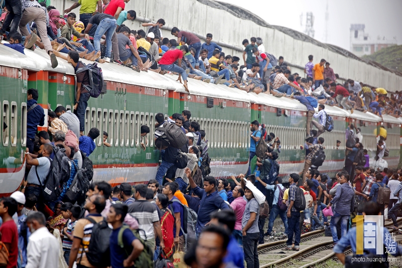 当地时间2019年8月9日,孟加拉国达卡,宰牲节将至,孟加拉国民众乘坐火车返乡,由于火车过度拥挤,他们爬上车顶,甚至开启“外挂” 模式。