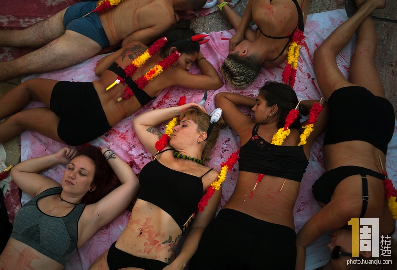 当地时间2019年8月10日,西班牙马加拉,数百名动物权益保护者走上举行抗议活动,要求废除斗牛。马加拉集市将于8月16日开幕,斗牛表演是每年的固定环节。