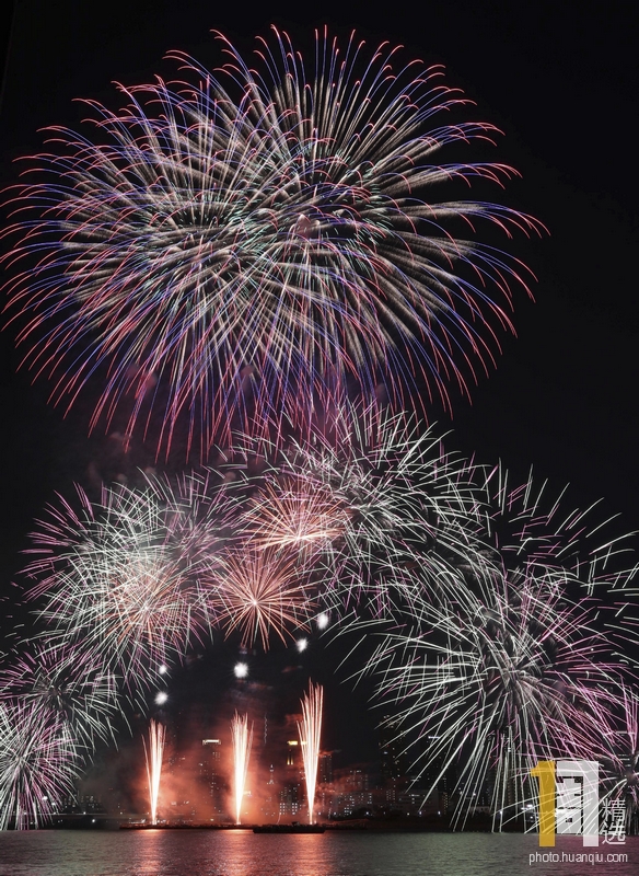 当地时间2019年8月10日,日本大阪,大阪淀川花火大会,绚烂烟花在夜空绽放。