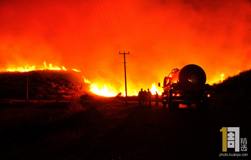 2019年8月8日,土耳其安塔利亚,Arapbeleni地区发生森林大火,消防队员紧急赶往现场救援。