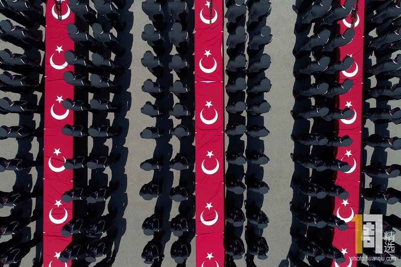 当地时间2019年8月7日,土耳其布尔萨,新毕业的警察在警察职业培训中心(POMEM)举行的毕业典礼上宣誓,现场组成的方阵颇为壮观。